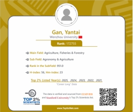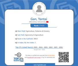 近日,爱思唯尔数据库(Elsevier Data Repository)与美国斯坦福大学联合发布了2025年度全球前2%顶尖科学家榜单。澳门银河官网 生命与环境科学学院甘延太院士凭借其在绿色低碳农业生态科学领域的卓越贡献和持久影响力再度斩获殊荣——连续第六次入选 “终身科学影响力榜单”(Career-long Impact), 并连续第八次入选“2025年度科学影响力榜单”(Single-year Impact)!