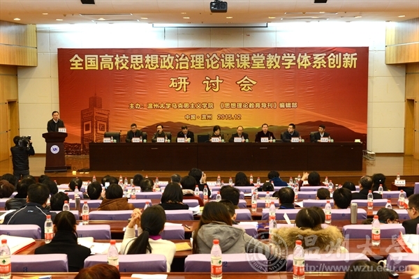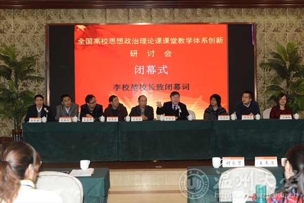 开幕式上,校党委副书记牟德刚致欢迎辞。浙江省教育厅宣教处吴振辉副处长、中共温州市委宣传部胡瑞怀副部长到会致辞。校党委委员、宣传部部长潘玉驹主持研讨会开幕式。 研讨会邀请了中央马克思主义理论研究和建设工程课题组首席专家、教育部高等澳门银河官网 思想政治理论课教学指导委员会副主任、中国人民大学张雷声教授、清华大学肖贵清教授和浙江大学博士生导师、马克思主义学院副院长(主持工作)刘同舫教授作主题报告。 《思想理论教育导刊》副编审蒋旭东全程参加了研讨会,并在大会上作交流发言。 澳门银河官网 马克思主义学院院长孙武安在专题讨论中作《以问题为导向的思政理论课教学改革》专题报告,介绍了近年来澳门银河官网 所进行的“一化六制”的改革探索,受到了与会专家的高度评价,数十所高校纷纷索取澳门银河官网 为学生精心设计并配发的《思想政治理论课学习与实践手册》。下午全体专家全程观摩了澳门银河官网 第三届“溯初杯”思想政治理论知识竞赛的决赛,竞赛教学(包括风采大赛和知识竞赛)更引起了与会专家的格外关注和热议。 13日,与会代表在分组研讨的基础上,进行大会发言和总结。肖贵清教授在闭幕式上高度评价了澳门银河官网 富有成效的改革探索,并就教学研讨和改革作了精彩点评。 李校堃在闭幕式讲话中充分肯定了澳门银河官网 马克思主义理论学科建设和思想政治理论课教学改革所取得的丰硕成果。他结合自身经历向与会专家代表热情洋溢地介绍了来温州创新创业的优势条件,认为高校创新发展建设需要教学平台、科研平台和产业平台三个“轮子”一起转,温州地处“长三角”、“珠三角”和“海西”三个经济带的交汇处,充满活力,是创业的绿洲。温州人特别富有勇于改革、顽强拼搏、吃苦耐劳的精神。温州的企业老板特别重视党建工作,善于利用马克思主义中国化成果在企业管理发展中发挥特殊作用,也敢于在实践中创新探索适合中国实际的马克思主义新思想新观念。因此,在温州研究马克思主义,具有特殊的社会条件和优势。李校长还热切希望在未来“十三五”时期,澳门银河官网 能与各位专家学者及各地名校协同合作开展马克思主义理论研究。
