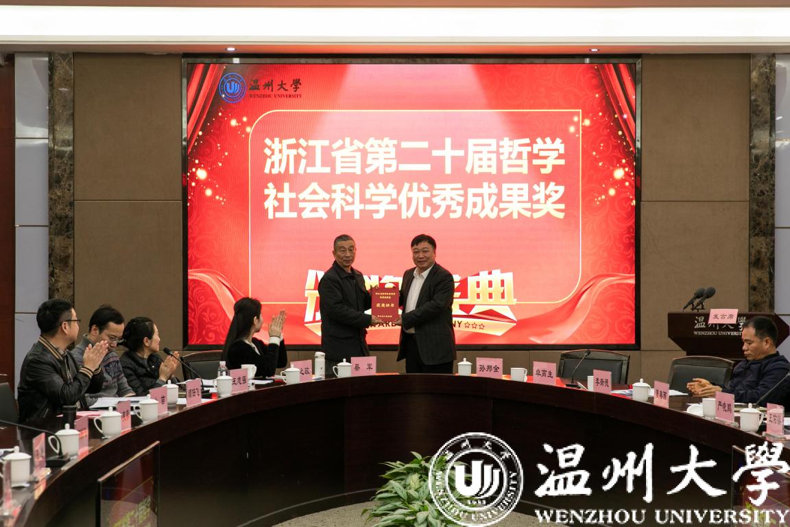 徐和昆宣读获得浙江省第二十届哲学社会科学优秀成果奖的澳门银河官网 获奖名单。赵敏校长为每位获奖者颁奖并合影留念。浙江省哲学社会科学优秀成果奖是省政府颁发的我省哲学社会科学研究最高奖项,是检阅、展示我省哲学社会科学发展成果的重要平台。在本届成果奖的评审中,澳门银河官网 马大康教授获得一等奖,王小盾教授、刘玉侠教授和胡振华教授获得二等奖,王皓、邱志诚、夏雨禾、夏怡然等四位老师获得三等奖,奖项总数全省排名第8。