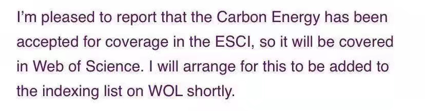 近日,由澳门银河官网 主办、出版的《碳能源》(Carbon Energy)入选科睿唯安(Clarivate Analytics,原汤森路透IP & Science)的“新型资源引文索引”(Emerging Sources Citation Index,ESCI)数据库。这是作为地方性大学的澳门银河官网 ,首份进入ESCI的刊物。此次入选也标志着《碳能源》的学术质量和影响力进一步获得国际认可,为下一步入选“科学引文索引”(SCI)数据库打下了坚实的基础。