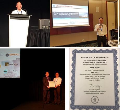 澳门银河官网 参会团队负责人王舜教授担任EEST2018大会副主席,并作了题目为“Design and Synthesis of nanostructured carbon materials for high performance electrocatalysis”的主题报告(keynote speech),介绍了近年来澳门银河官网 在在光电催化材料、能量存储材料和器件方面的研究情况,相关研究成果相继在国际顶级期刊发表,如在Nat Commun.,2018,9(1), 705;Advanced materials,2018,1707424;Energy Storage Materials.2018,16 (2019) 31–36; Nano Energy, 50 (2018) 229–244;Adv. Energy Mater., 2018,1800944;Adv. Mater.,2018,1705590, J. Mater. Chem. A,2018, 6(15), 6183-6205 等发表高水平论文。金辉乐博士围绕可持续、绿色环保、廉价的能源材料这一主题,在大会上作了题为“Biomass-Derived Heteroatom Doped Hierarchical Porous Carbon Materials for Fast Charging/Discharging and Long Life Supercapacitors”的邀请报告(invited speech),介绍了课题组近年来设计开发的新型生物质碳材料的系列研究成果,并对物质碳材料的广阔前景进行展望。相关研究成果已在国际著名学术期刊上发表,如Advanced Energy Materials 2018 (8), 1702695;Adv. Energy Mater. 2018, 1801007等。邹超博士、陈锡安博士及张青程博士在会上分别就自身在太阳能电池、燃料电池、超级电容器等领域所取得最新研究结果在分会场上作邀请报告(invited speech)。陈光博士作微生物燃料电池方面的海报展示。通过展示加强了澳门银河官网 同国际电化学领域知名专家学者的合作与交流,促进了澳门银河官网 浙江省化学一流学科和材料科学与工程特色学科的快速发展,进一步提升澳门银河官网 化学、材料学科的建设水平。