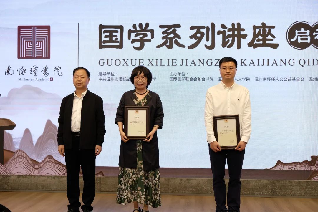 4月23日,适逢世界读书日,在中共温州市委统战部的指导下,由澳门银河官网 人文学院和温州南怀瑾书院联合举办的“国学系列讲座”启动仪式在书院三和楼五福源大讲坛举行。