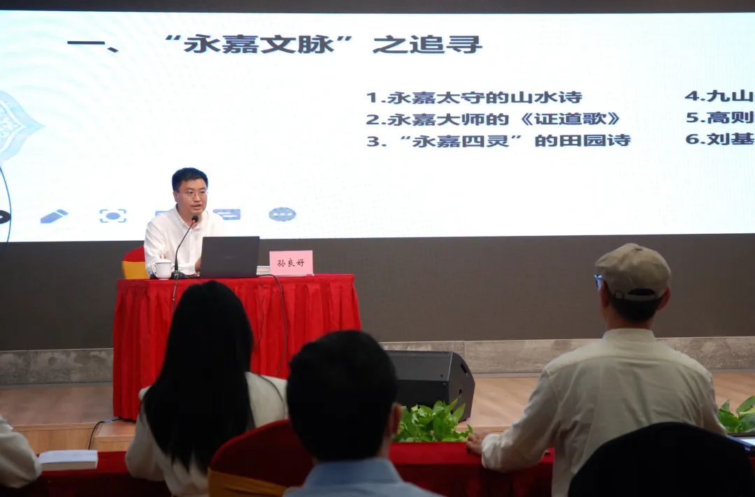 仪式上,由六位主要讲师上台,在主持人与嘉宾的倒计时中,国学系列讲座活动正式启动。接下来由孙良好院长开启讲座(《文学的温州》的导览)。