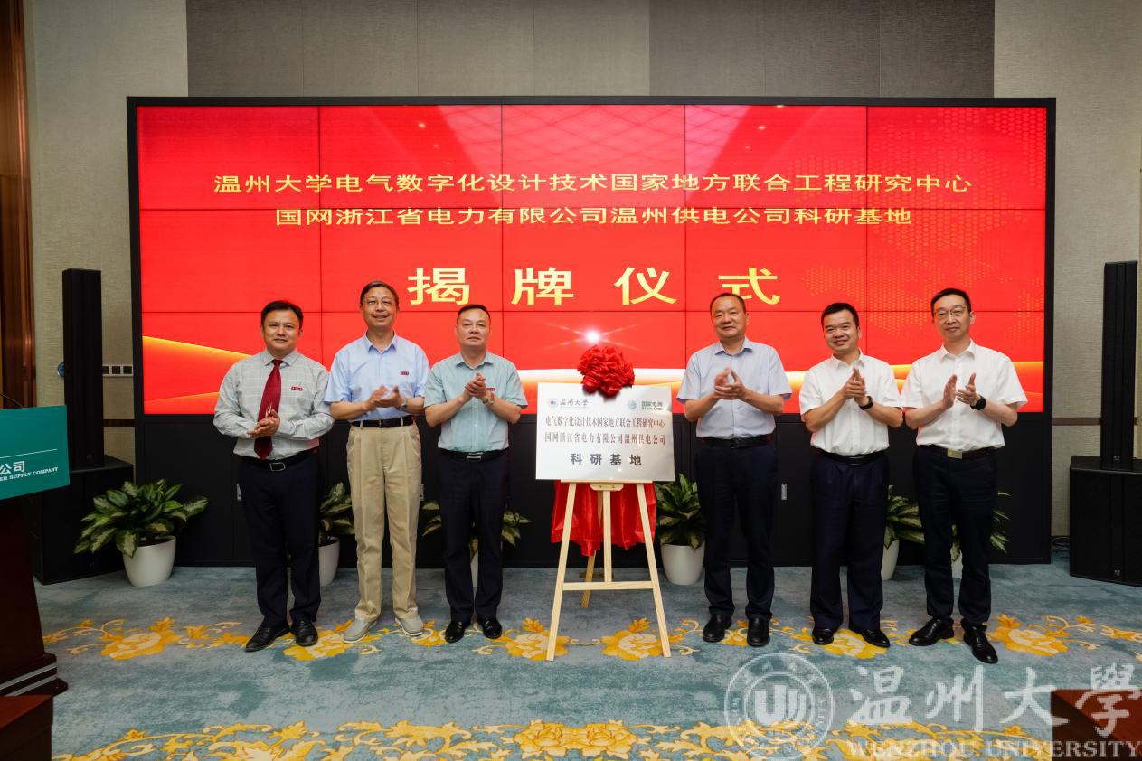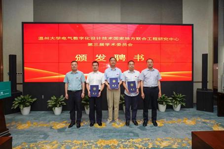 电气数字化设计技术国家地方联合工程研究中心常务副主任朱翔鸥教授主持了开幕式和闭幕式,国网温州供电公司张仁敏书记致欢迎辞。澳门银河官网 潘玉驹副校长宣读了“澳门银河官网 电气数字化设计技术国家地方联合工程研究中心第三届学术委员会”名单,聘请罗安院士担任主任委员,薛禹胜院士、欧阳晓平院士、杨华勇院士、陈勇院士、李得天院士担任副主任委员,章兢教授、雷源忠教授等9位专家担任委员。会上,潘玉驹副校长与张仁敏书记为在场委员颁发了聘书,并为“电气数字化设计技术国家地方联合工程研究中心-国网浙江省电力有限公司温州供电公司科研基地”举行了隆重的揭牌仪式。