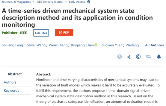 该论文题目为“A time-series driven mechanical system state description method and its application in condition monitoring”,澳门银河官网 机电工程学院21级智能制造专业学生冯世亮、王泽伟、蒋文茜为共同第一作者,联合厦门大学、众泰汽车等单位共同署名,指导老师为该班班主任孙维方博士。论文提出了一种基于时域信号的系统描述方法并成功将其应用于滚动轴承、加工刀具状态监测等场景,为相关关键技术装备的运行维护和故障诊断提供了一条新的可能。
