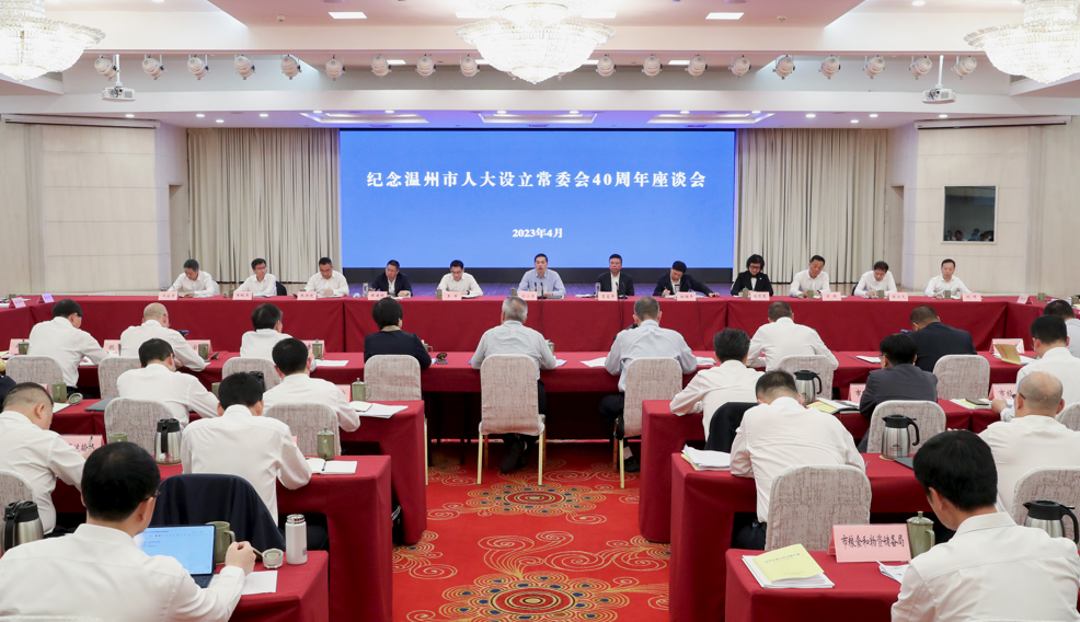 4月17日,纪念温州市人大设立常委会40周年座谈会在我市召开。市人大常委会主任葛益平主持,市委书记刘小涛作在会上做题为《坚持和完善人民代表大会制度 为谱写中国式现代化温州篇章贡献人大力量》的重要发言。市领导王军、杨胜杰,部分市人大常委会老领导,全国、省、市人大代表等出席。市人大常委会副主任陈建明、徐育斐、张洪国、梁超、王蛟虎、陈永光、冯金考和秘书长刘峰等参加。