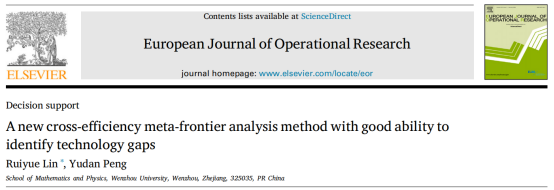 近日,数理学院林瑞跃教授以第一和通讯作者身份与其硕士研究生彭玉丹合作在国际运筹管理领域顶级期刊EJOR发表题为《A new cross-efficiency meta-frontier analysis method with good ability to identify technology gaps》的论文。