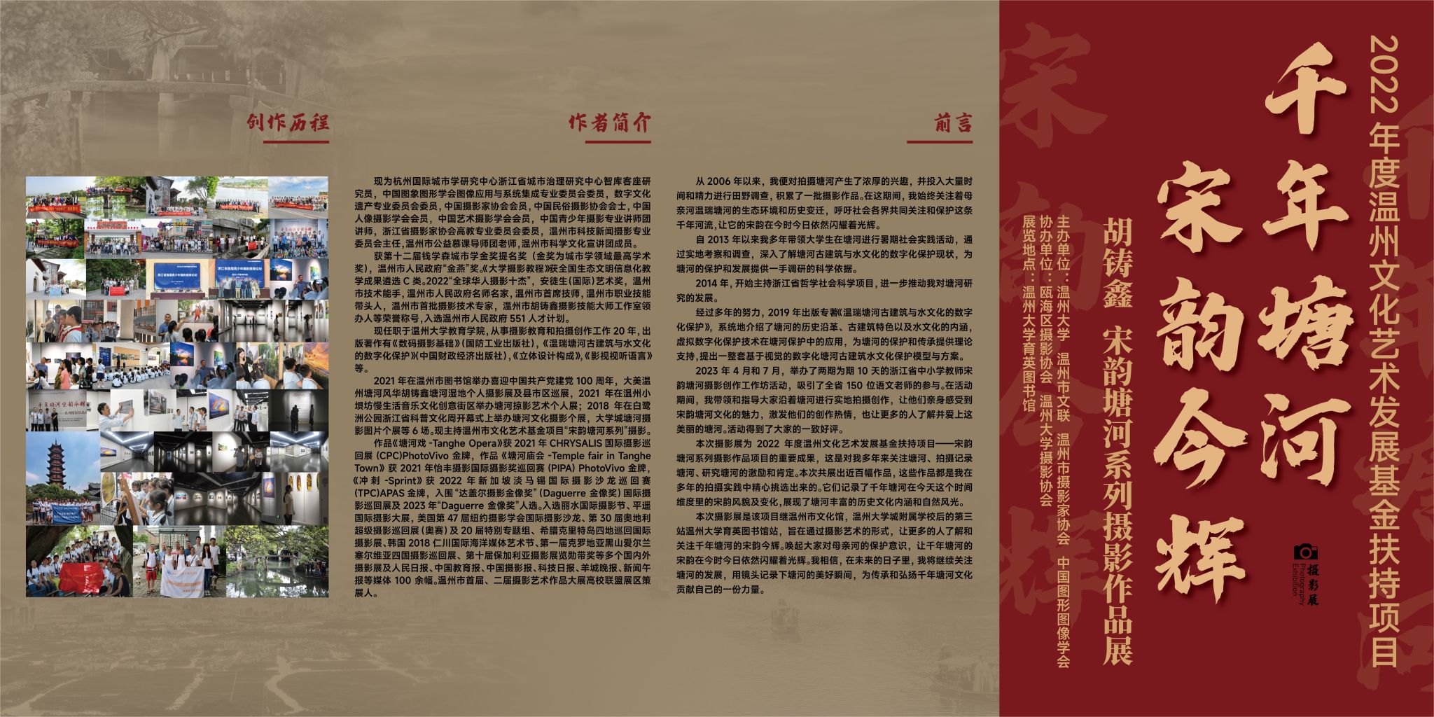 澳门银河官网 教育学院胡铸鑫副教授以观片会的形式向与会者展示和研讨了主持的温州文化艺术发展基金2022年度资助项目宋韵塘河系列摄影作品巡展的创作过程,展示了“千年塘河 宋韵今辉——胡铸鑫宋韵塘河系列”摄影作品近200幅。所有作品均紧紧围绕主题,取材拍摄于温瑞塘河流域上的宋韵今辉。作品得到了大家的一片鼓掌。从2006年开始,胡铸鑫便对拍摄塘河产生了浓厚的兴趣,并投入大量时间和精力进行田野调查,积累了一批摄影作品。2019年,胡铸鑫出版专著《温瑞塘河古建筑与水文化的数字化保护》,获得第十二届钱学森城市学金奖提名奖(该奖为城市学学术最高奖)。个人获2022“全球华人摄影十杰”称号,安徒生(国际)艺术奖,温州市胡铸鑫摄影技能大师工作室领办人等荣誉称号。