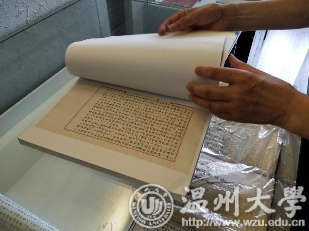 陈列室进门的第二个陈列柜里,俞为民教授拿出一本复制本告诉记者,早期南戏《张协状元》、《宦门子弟错立身》、《小孙屠》在明代被收入《永乐大典》里,得以保存,人们统称为《永乐大典戏文三种》。其中,《张协状元》是南宋时期温州九山书会的才人创作的,是唯一完整保留下来的南宋戏文,弥足珍贵。但是《永乐大典》当年被八国联军掠夺到海外,后来这三种南戏是被叶恭绰先生从伦敦购回,才回到祖国怀抱。另外还有很多古代的孤本在抗日战争时期被日本侵略者掠夺走,他是通过多方关系,从日本内阁文库拓印过来。为了这些复制本,俞为民经常是要自掏腰包购买,也跟随着他从南京来到温州,他自嘲说:“这些宝贝比我的女儿还亲。”