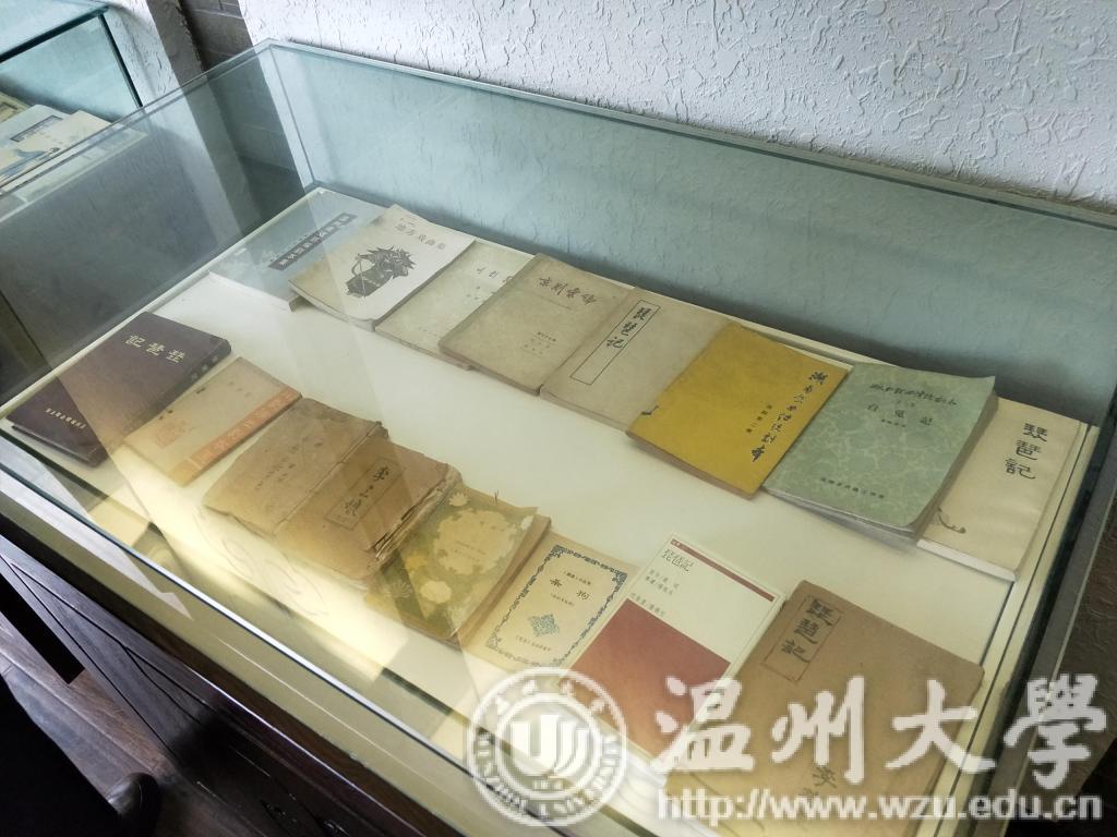 在这个不到四十平方米的陈列室里,摆着十余个陈列柜,里面收藏数百种戏曲文本。远的到宋元时期的南戏剧本复制本,明代《永乐大典戏文三种》的复制本,《荆钗记》《白兔记》《拜月亭》《琵琶记》等南戏剧本的一些善本孤本,以及解放前的一些南戏剧本,甚至演出门票。近到最近几年温州南戏演出剧本、研究著作。以及海外各国南戏的译本,以及研究著作。走在陈列室里面,犹如穿越时空隧道,从宋、元、明、清到当代,可以清晰地看到南戏的发展脉络。