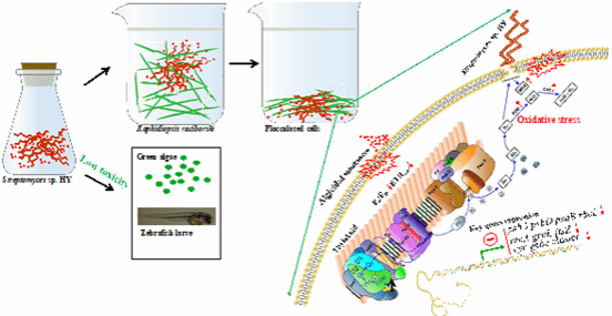 澳门银河官网 李仁辉教授课题组长期开展蓝藻水华监测和治理相关研究工作。他们在前期工作中,通过筛选数百株来自不同水域来源的微生物,最终分离获得一株高效溶藻链霉菌Streptomyces sp. HY(下文简称菌株HY)。该菌株不仅可以在液体培养基中快速生长,其培养物(5%,v/v)还可以高效去除微囊藻,2天的溶藻率高达93.04%(2023年发表于学术期刊Toxins),且对绿藻、斑马鱼胚胎等非靶标水生生物无显著毒性。而且,课题组在研究过程中发现菌株HY展示出广谱的溶蓝藻活性,尤其对丝状尖头藻2天的去除率可高达99.89 %,是目前已报道最高效的溶尖头藻细菌,具有巨大的应用潜力。