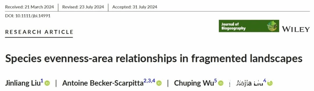 片段化生境中,物种均匀度与斑块面积的关系能够反映斑块内物种多度分布如何受到斑块面积的影响。在预测生境片段化对物种多样性的影响时,物种均匀度考虑了物种的相对多度,比单纯考虑物种丰富度提供了更多的信息。尽管斑块内物种多度分布对环境变化的响应比物种丰富度更为敏感且迅速,但与物种丰富度-面积关系(SARs)不同,不同分类群的物种均匀度-面积关系(SEARs)尚未得到深入研究。