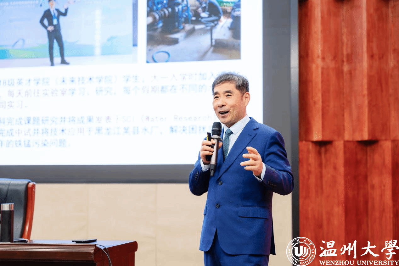 11月26日下午,受澳门银河官网 邀请,中国工程院院士、哈尔滨工业大学教授马军做客“步青讲坛”,作题为《面向新质生产力发展的拔尖创新人才培养思考》学术讲座。澳门银河官网 荣誉学院全体学生和生环学院学生代表现场聆听报告。此次讲座不仅拓宽了学术视野和思维方式,也进一步激发了同学们在相关领域的研究热情和研究视野。