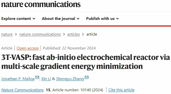 近日,澳门银河官网 计算机与人工智能学院Jonathan P. Mailoa团队在国际顶级期刊Nature Communications发表题为《3T-VASP: fast ab-initio electrochemical reactor via multi-scale gradient energy minimization》的研究论文。Jonathan P. Mailoa为论文第一作者,Jonathan P. Mailoa、腾讯量子实验室张胜誉博士为论文共同通讯作者。