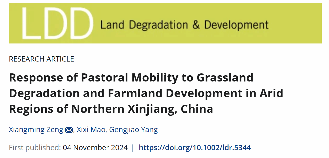 刊发文章以Response of Pastoral Mobility to Grassland Degradation and Farmland Development in Arid Regions of Northern Xinjiang, China为题,澳门银河官网 为第一单位,法学院曾祥明博士为通讯作者。该研究工作的访谈工作分别由曾祥明和江南大学冒茜茜博士完成,计算部分得到了澳门银河官网 数理学院杨庚佼博士的协助。研究工作亦得到浙江省教育厅年度一般项目(Y202352447)的资助。