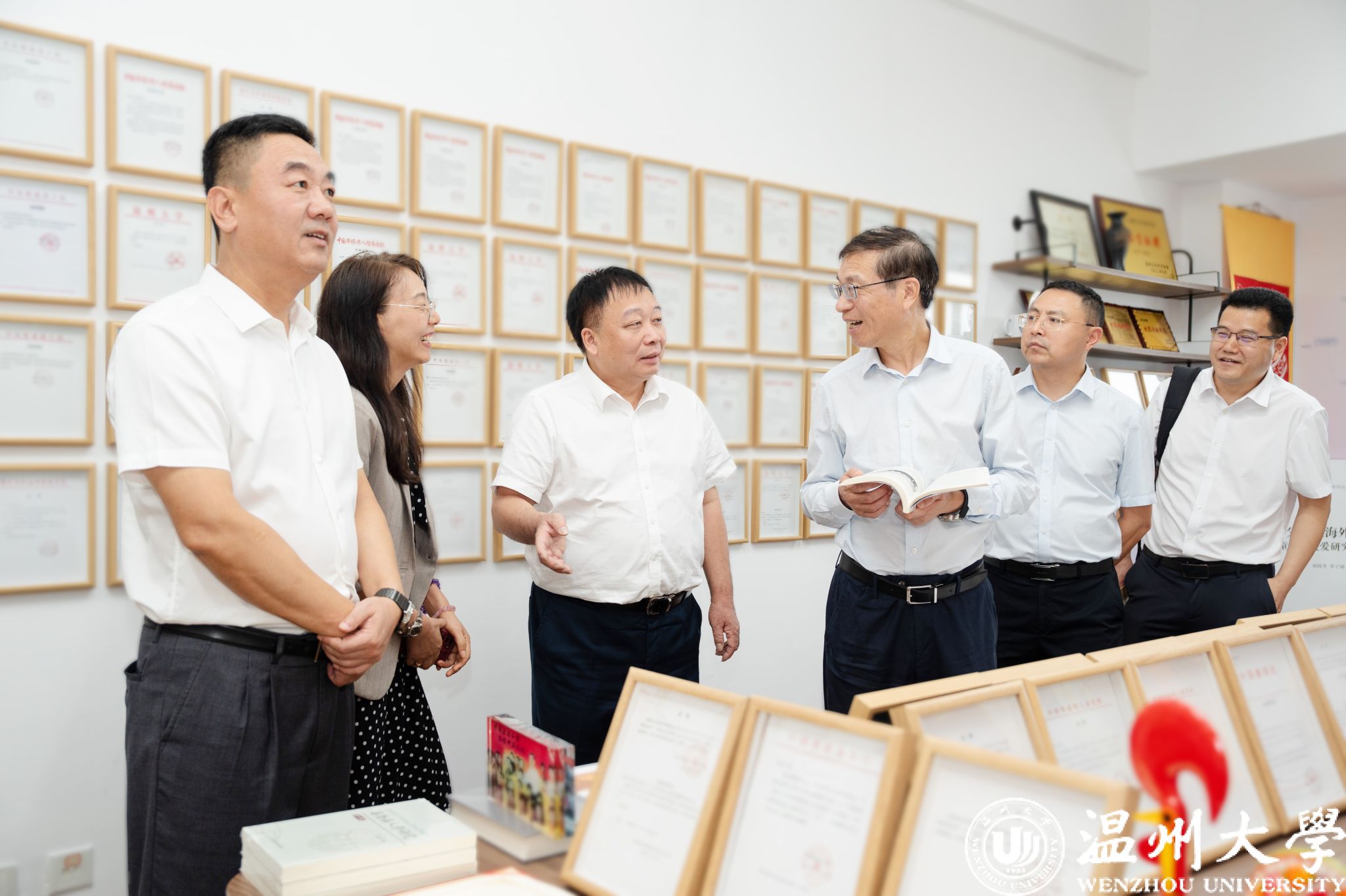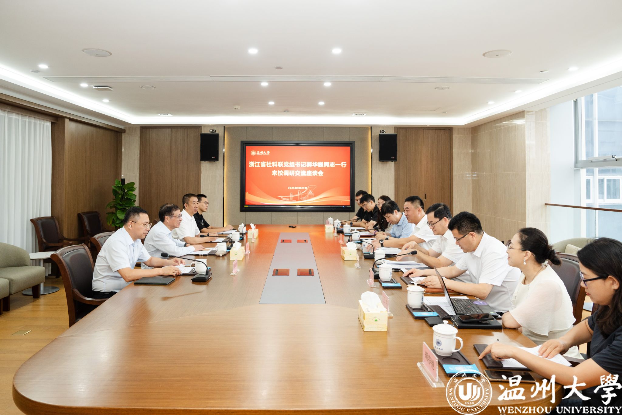 9月23日下午,浙江省社科联党组书记、副主席郭华巍一行来校调研,浙江省社科联党组成员、秘书长陈名义,温州市社科联党组书记、主席潘晓勇,澳门银河官网 校领导钱强、赵敏、王军陪同调研。
