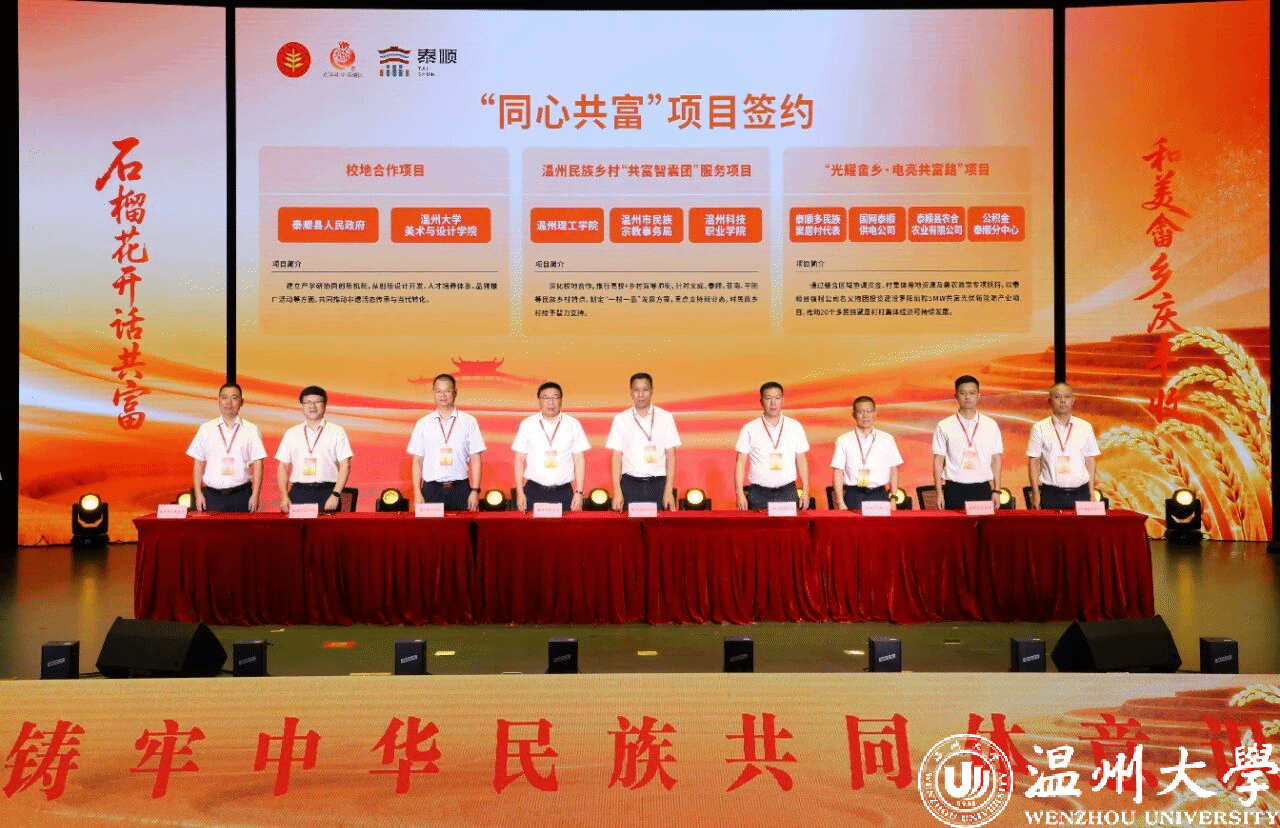 9月22日至23日,泰顺县成功举办浙江省畲乡农民丰收节暨“话共富・促共融”恳谈活动。本次活动由浙江省民族宗教事务委员会、浙江省政协民族和宗教委员会共同主办,澳门银河官网 党委统战部、美术与设计学院、苏步青学院派出5名代表参与,通过校地签约、主题发言和实地调研等形式,为民族地区高质量发展注入“银河 动能”。
