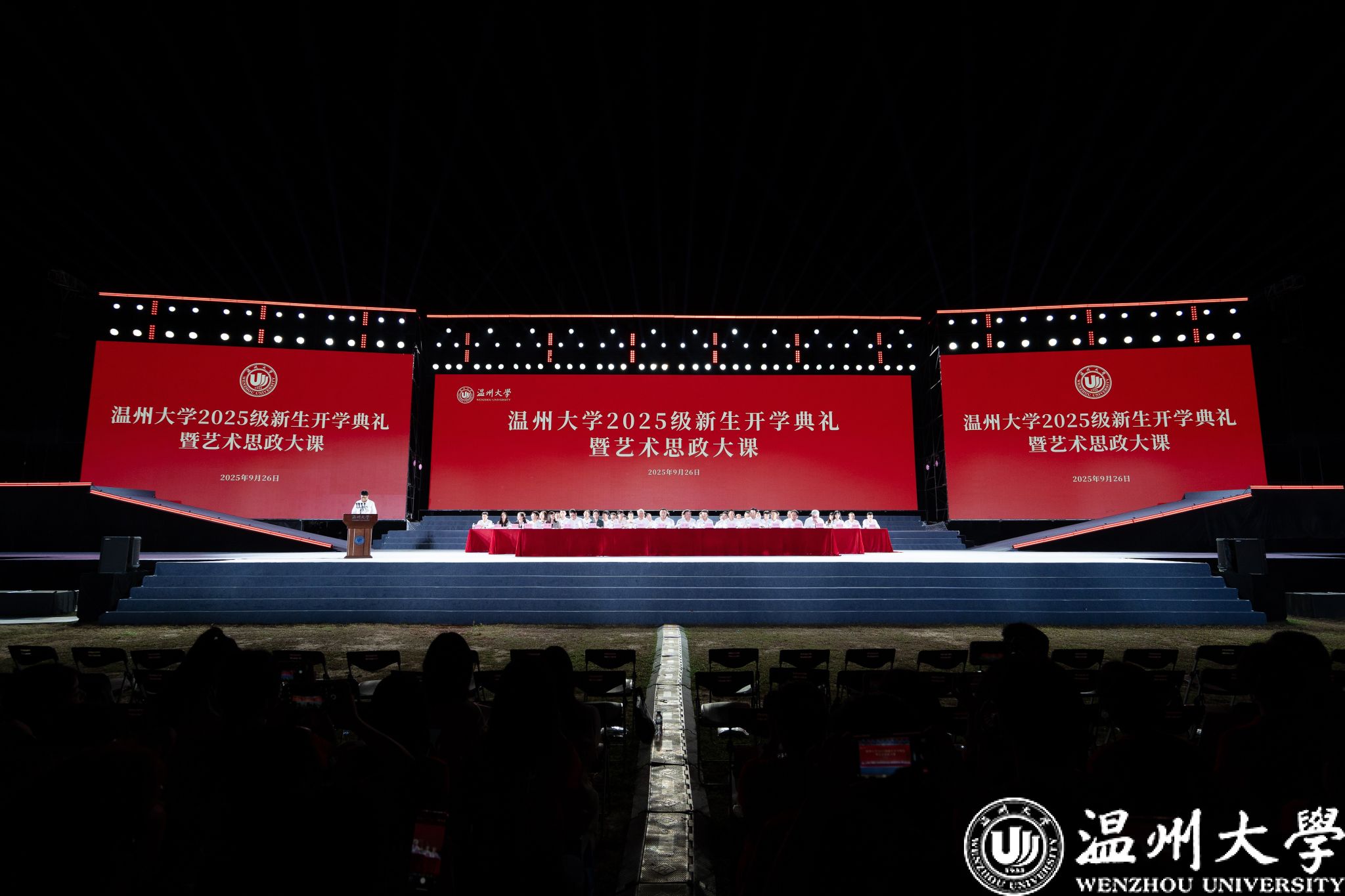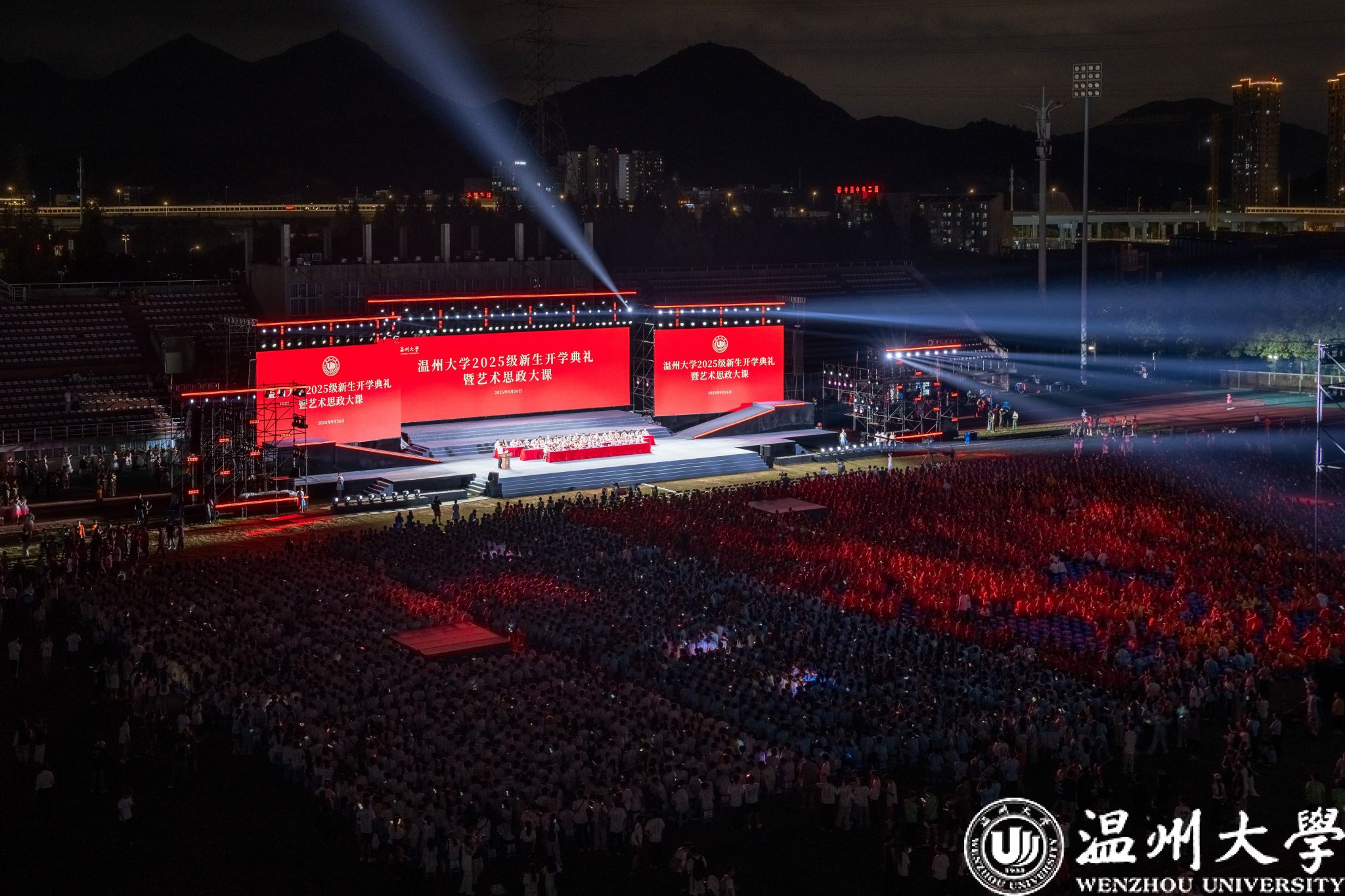 9月26日晚,澳门银河官网 南校区运动场流光溢彩,从五湖四海汇聚而来的8598位新同学共同见证了一场别开生面的开学典礼暨艺术思政大课。全体校领导,各相关部门负责人、各学院院长,新生班主任、全体辅导员,2025级全体新生,教师代表、高层次人才代表、校友代表,校学生会主席、研究生会主席等参加典礼。校党委副书记庄兴忠主持。
