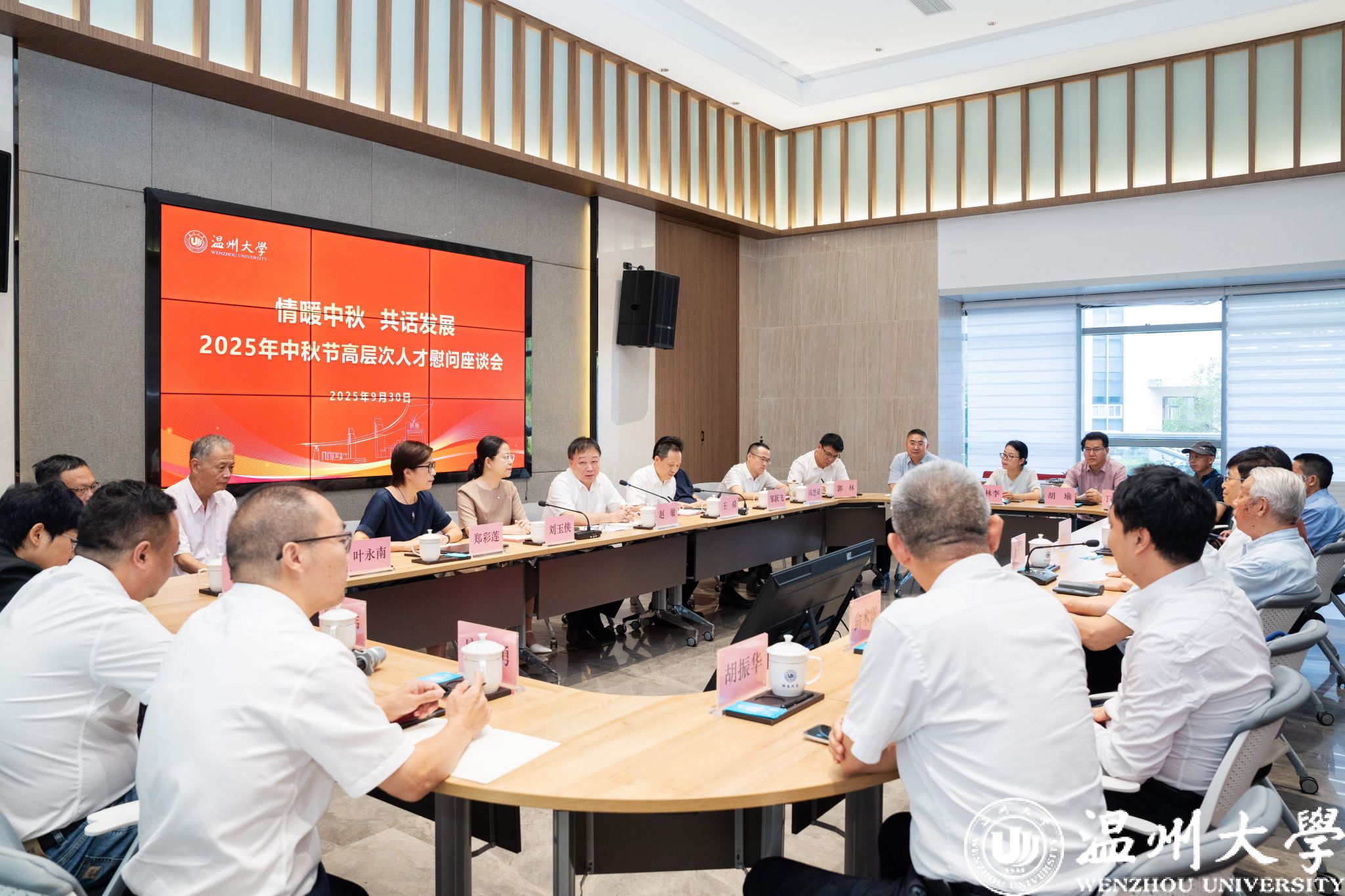 为深入贯彻人才强校战略,体现对高层次人才的关怀与尊重,2025年9月30日,在中秋节、国庆节“双节”来临之际,澳门银河官网 在行政楼一楼校友之家召开“情暖中秋 共话发展”高层次人才慰问座谈会。校长赵敏出席会议,金振民、甘延太、井芹宁、侴术雷等15名高层次人才代表以及党校办、人事处、教务处、科技处、人文社科处、教发中心等相关处室负责人参加会议。