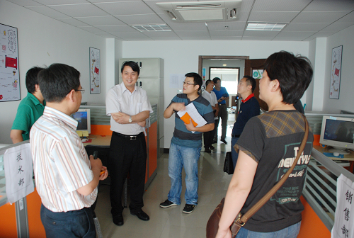 参观中,学院党委副书记张敏、招生就业部包长昕等向客人们介绍我院大学生创业教育情况及文化创意产业园建设发展情况,楼利明一行对瓯江学院开展的创业教育给予充分肯定和高度评价,在考察过程中,与学院师生进行了亲切交流。