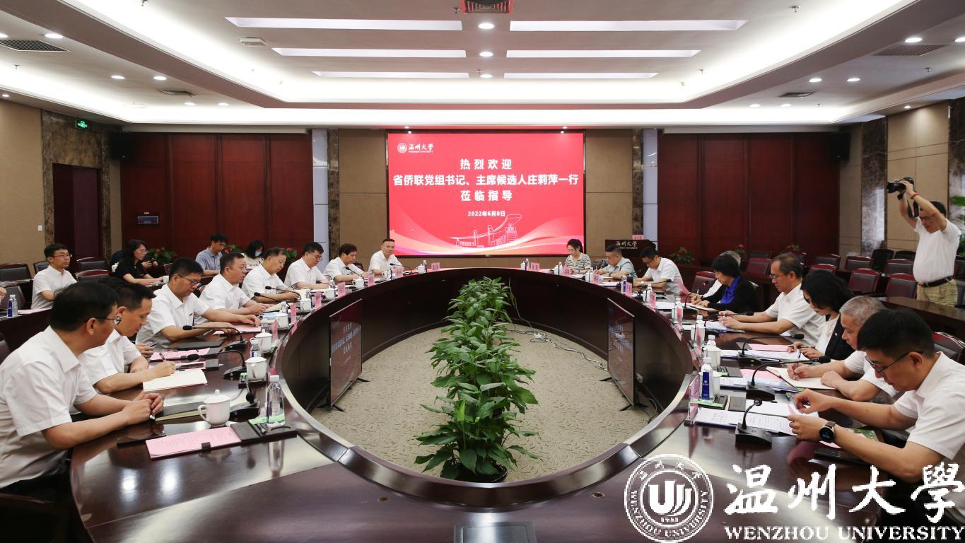 6月8日上午,浙江省侨联党组书记、主席候选人庄莉萍,党组成员、副主席、一级巡视员张维仁,办公室(组织人事部)二级主任科员孟晨啸一行莅临澳门银河官网 调研指导工作。温州市委常委、统战部部长汪驰,市侨联党组书记吴娜丽,市侨联党组成员、副主席杨海曼,市侨联党组成员、秘书长陈晓军等领导陪同调研。校领导谢树华、吴金法、庄兴忠、徐和昆、蔡曙光、杨林书、王舜、潘玉驹、郑信军出席调研座谈会。