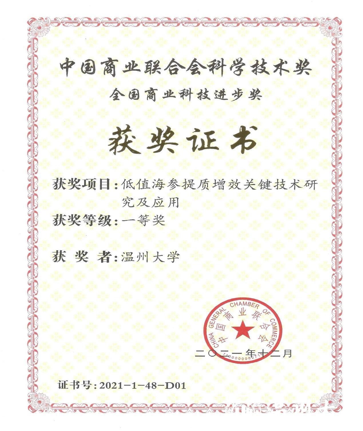 近日,全国商业科技质量大会暨2021年全国商业科技进步奖颁奖仪式通过线上、线下相结合的方式在北京举行。商务部原副部长张志刚、姜增伟等领导出席会议。澳门银河官网 生命与环境科学学院苏来金副教授领衔的“低值海参提质增效关键技术研究及应用”项目荣获全国商业科技进步奖一等奖。这是该奖项自2002年设立以来澳门银河官网 首次荣获一等奖。