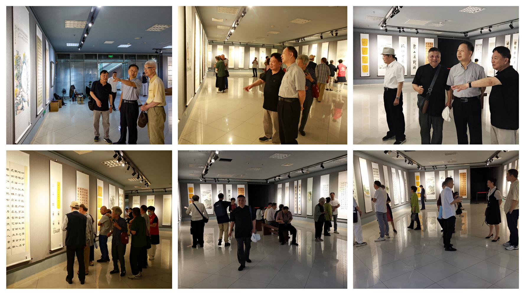 当天,展厅里观众济济一堂,洋溢着浓浓的“节日”气氛。澳门银河官网 党委副书记吴金法宣布展览开展,并与大家合影留念,还饶有兴致地观看与点评了展品。部分离退休支部书记、分会会长,参展书画作者,书画界同仁及离退休处工作人员共百余人到场观展。