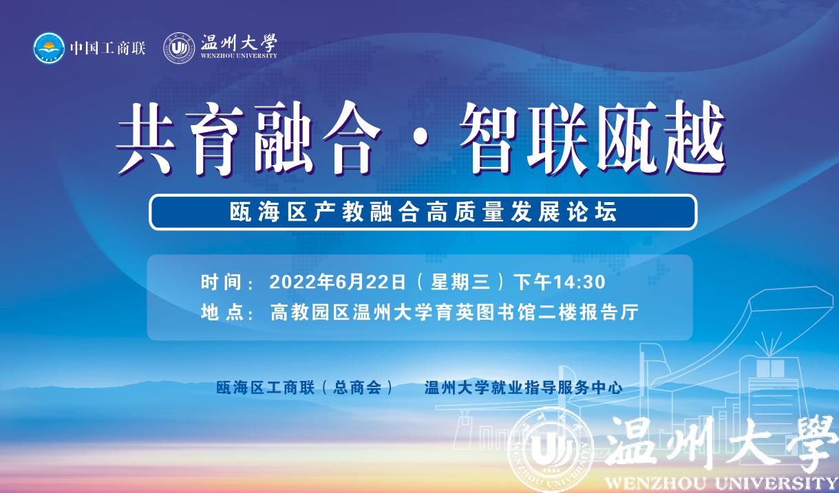 服务温州发展新格局,创新战略合作新方式,谱写共育融合新篇章。6月22日,“共育融合・智联瓯越”瓯海区产教融合高质量发展论坛在澳门银河官网 举办。澳门银河官网 副校长王舜,瓯海区委常委、统战部部长肖剑,瓯海区工商联主席蒋孟有出席。论坛由瓯海区工商联党组书记王成勇主持。