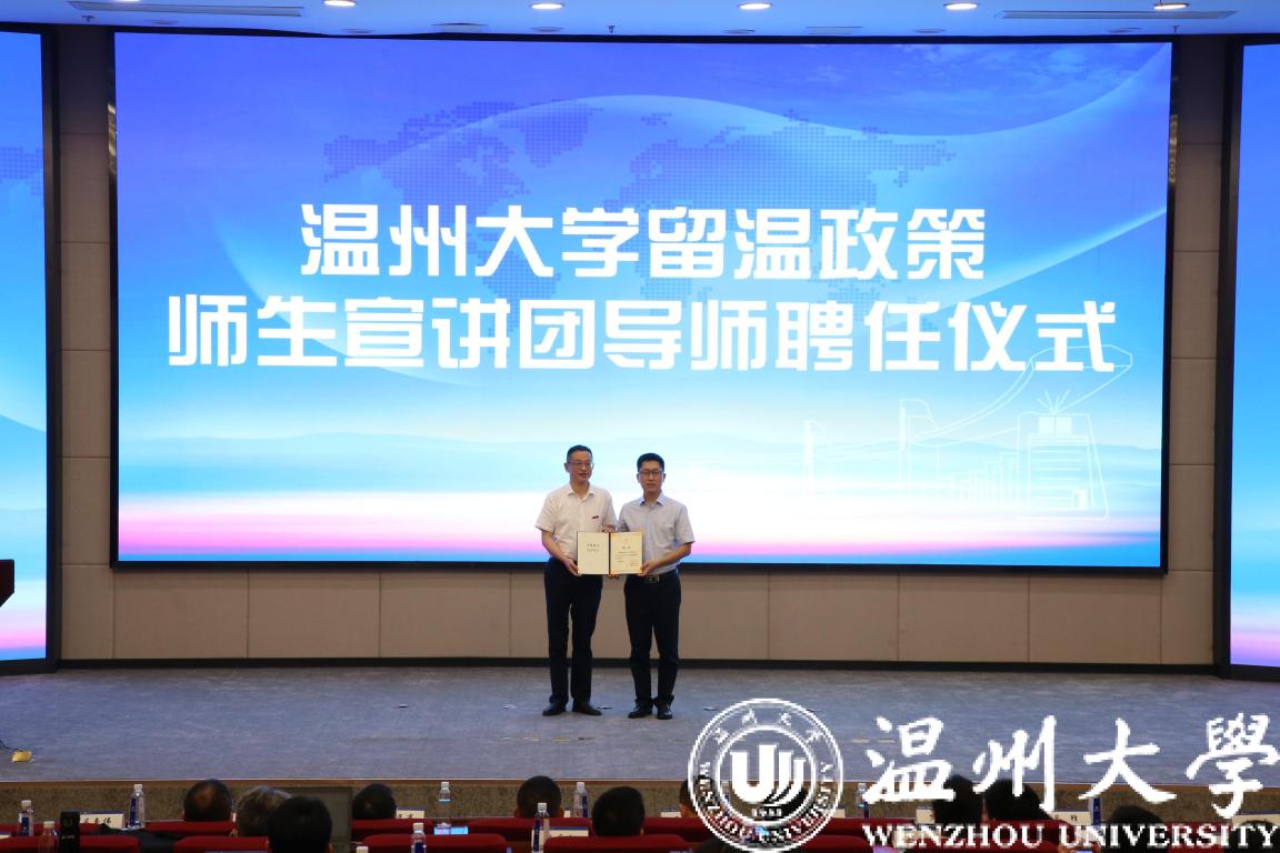 会上成立澳门银河官网 留温政策宣讲团并在现场举行了授旗仪式,澳门银河官网 招生与就业处负责人颁发宣讲团导师聘书。