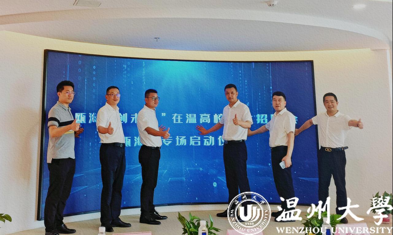 瓯海区人力资源和社会保障局党组书记兼局长蔡向波、瓯海区工商联党组书记王成勇,澳门银河官网 招生与就业处、计算机与人工智能学院负责人、瓯海区人力资源和社会保障局党组成员蔡争伟、温州市数字经济研究院副院长谷雨共同启动“来瓯海·创未来”在温高校线上招聘会--瓯海区专场系列活动。