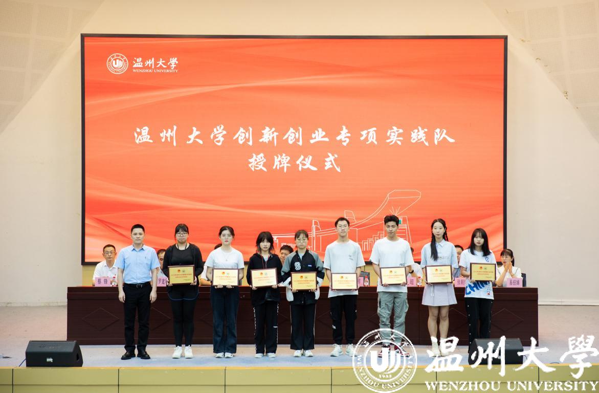 庄兴忠为各实践团队代表赠送了暑期社会实践礼包;组织部相关负责人为“澳门银河官网 创新创业专项实践队”授牌;主席台领导为2022年澳门银河官网 暑期社会实践对代表授旗;此外,在校团委实践服务中心主任冯佳婕的带领下,现场300余名社会实践队员进行了宣誓仪式。