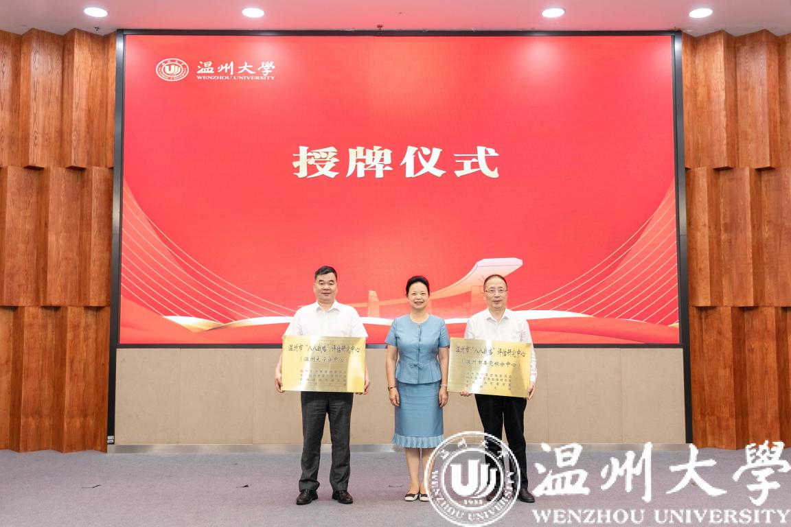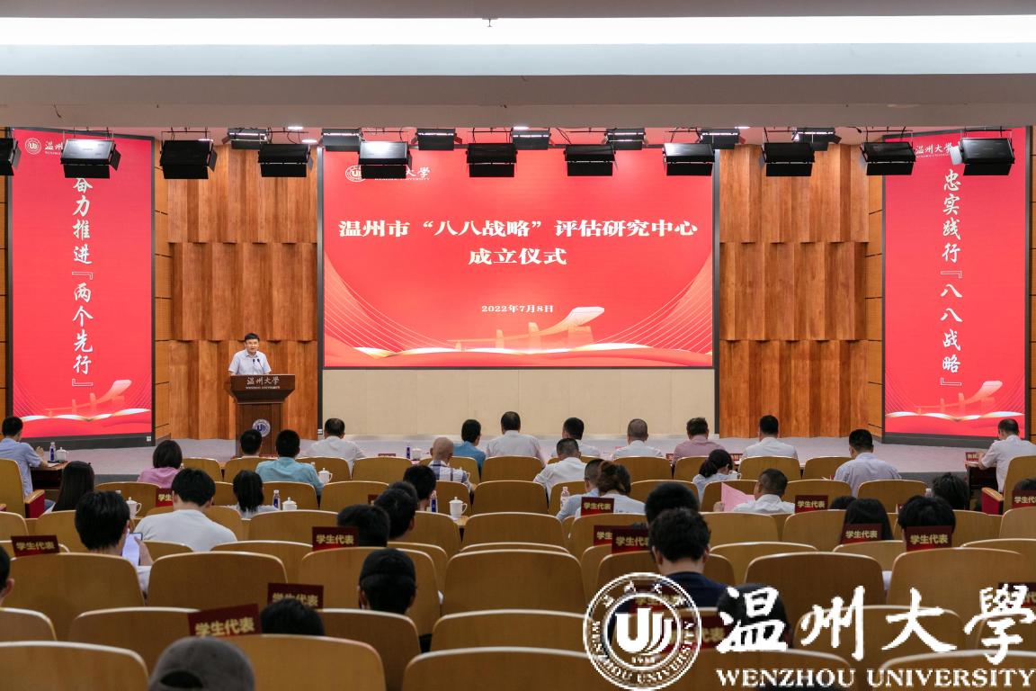 7月8日,由温州市决策咨询委员会、中共温州市委政策研究室、中共温州市委党校、澳门银河官网 联合建设的温州市“八八战略”评估研究中心在澳门银河官网 正式授牌成立。市决咨委主任、市政协原主席余梅生,市委一级巡视员、市决咨委副主任胡剑谨,校党委书记谢树华,副校长徐和昆,市委党校常务副校长洪文滨,市委副秘书长、政策研究室主任、市决咨委秘书长潘建中等领导,以及市直部门代表、市决咨委委员、市“八八战略”评估研究中心专家、澳门银河官网 教师与学生代表等参加仪式。市委副秘书长潘建中主持。成立仪式由澳门银河官网 人文社科处、马克思主义学院等单位承办。