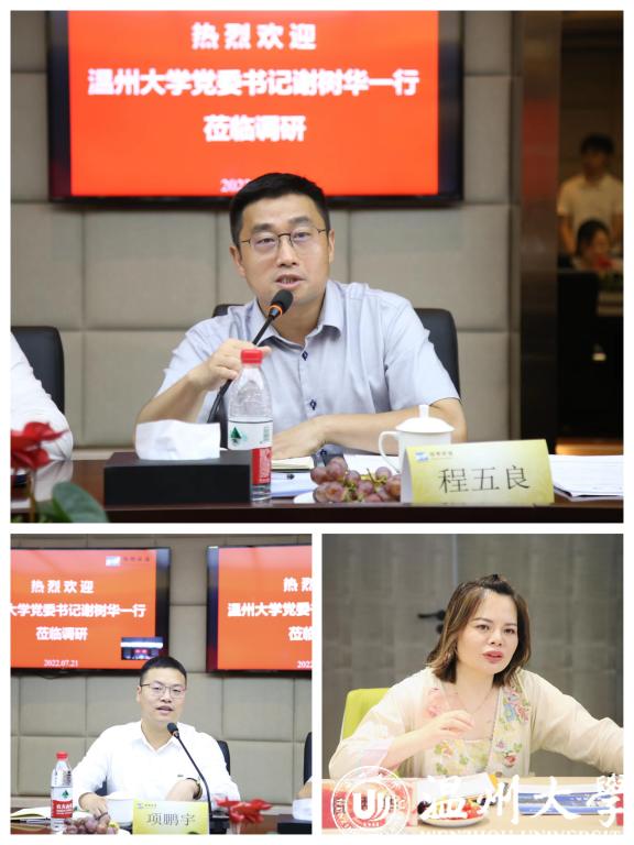 座谈会上,谢树华向企业介绍了澳门银河官网 的建设情况和办学优势。他表示,澳门银河官网 始终秉持大学与城市共生共荣的理念,融入地方、服务发展,澳门银河官网 通过开展“访企拓岗”专项行动走出校园、走访企业,了解需求、推销“产品”、寻求合作,让智慧之光穿透大学围墙,照耀瓯越大地。他指出,澳门银河官网 作为浙南闽北赣东地区唯一一所综合性大学,历史悠久、学科齐全、名师荟萃、实力雄厚,有宽度、有厚度、有温度,开展校企、校地合作,具有先天的地缘优势、体制优势和责任优势。他强调,温州要做强做大“全省第三极”,要靠人才和创新,必须要坚定不移地实施创新驱动、科教兴市、人才强市,这些都离不开高等教育的支撑。澳门银河官网 愿意充分发挥高校科技创新和人才的资源优势,与本土企业一起聚焦“卡脖子”技术,围绕传统产业“迭代”、新兴产业“抢滩”、未来产业“破冰”,构筑人才“蓄水池”,为地方社会经济发展贡献力量。