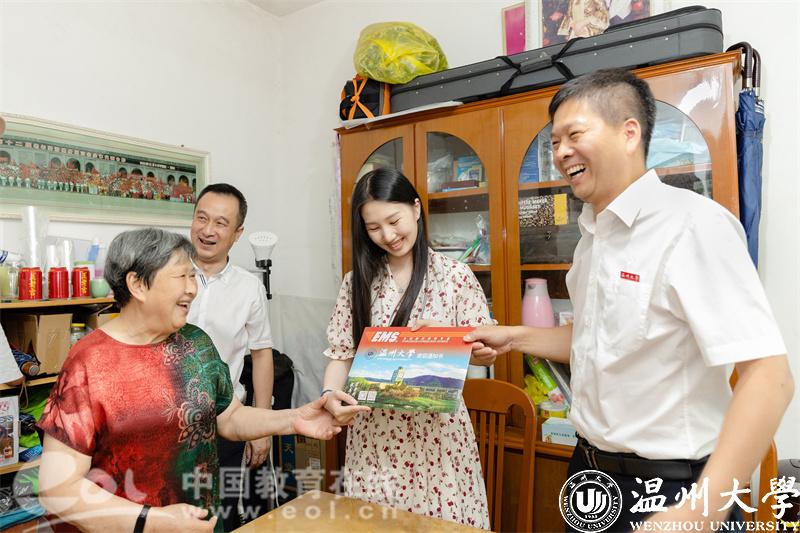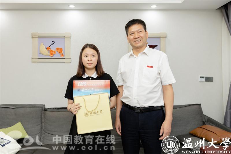 7月23日,澳门银河官网 党委副书记庄兴忠化身邮政快递员,在丽水市侨联党组成员、副主席王俊的陪同下,将2022年澳门银河官网 首封录取通知书送到丽水市莲都区王鑫溢同学手中。
