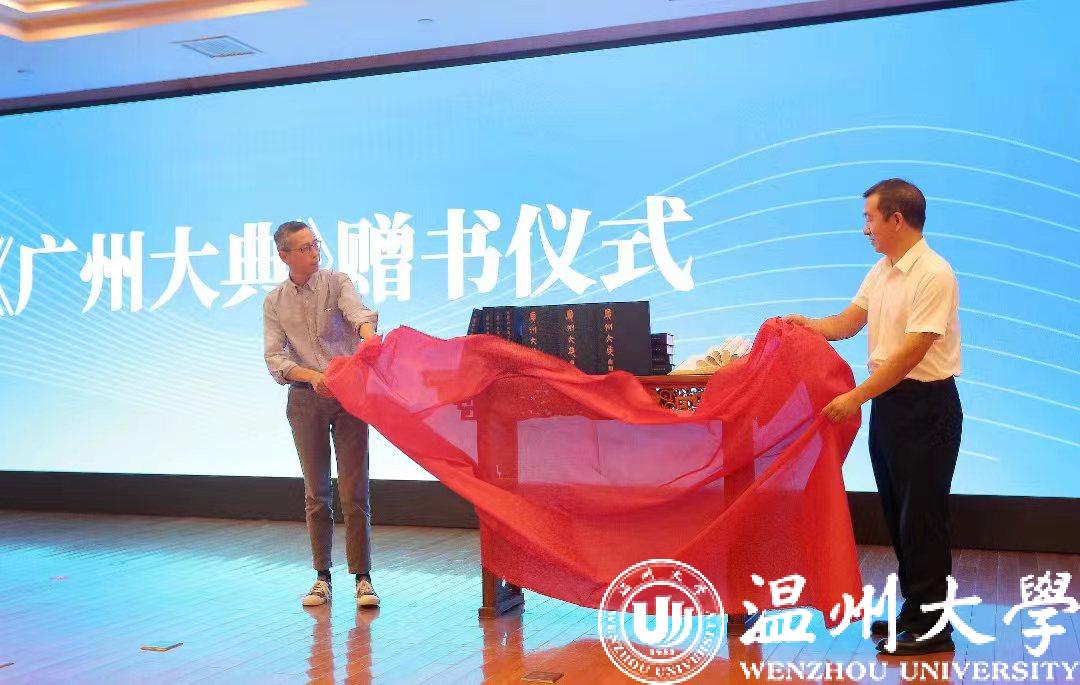 会上成立了《温州大典》学术委员会,聘任了首批31位学术委员会主任、顾问、委员。其中,来自澳门银河官网 的专家有《澳门银河官网 学报》陈增杰编审、美术学院张如元教授、图书馆陈光熙研究馆员、外语学院李新德教授、人文学院俞为民教授、诸葛忆兵教授、方韶毅副编审、陈瑞赞研究员及柔引高端人才钱志熙教授、张索教授等。人文学院院长孙良好教授代表澳门银河官网 签署《温州大典》第一批编纂研究项目,标志着《温州大典》编纂工作迈向实质性阶段。第一批14个项目中,《温州方志丛刊》《温州历代山水名胜志辑》由陈瑞赞研究员牵头编纂研究。方韶毅副编审、温州市图书馆张启林馆长代表《温州大典》专班接受《广州大典》研究中心赠书。