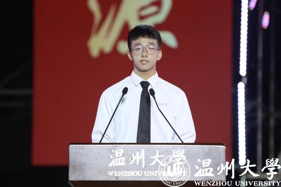 本专科生代表胡瑞祥同学发言。他号召全体新生同学在梦想力量蓬勃向上、奉献声音响彻云霄的银河 校园中一同书写青春奋斗的美好篇章。