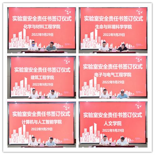 为进一步健全与落实实验室安全责任体系,会上举行了实验室安全责任书签订仪式,潘玉驹代表澳门银河官网 与各学院签订了实验室安全责任书。