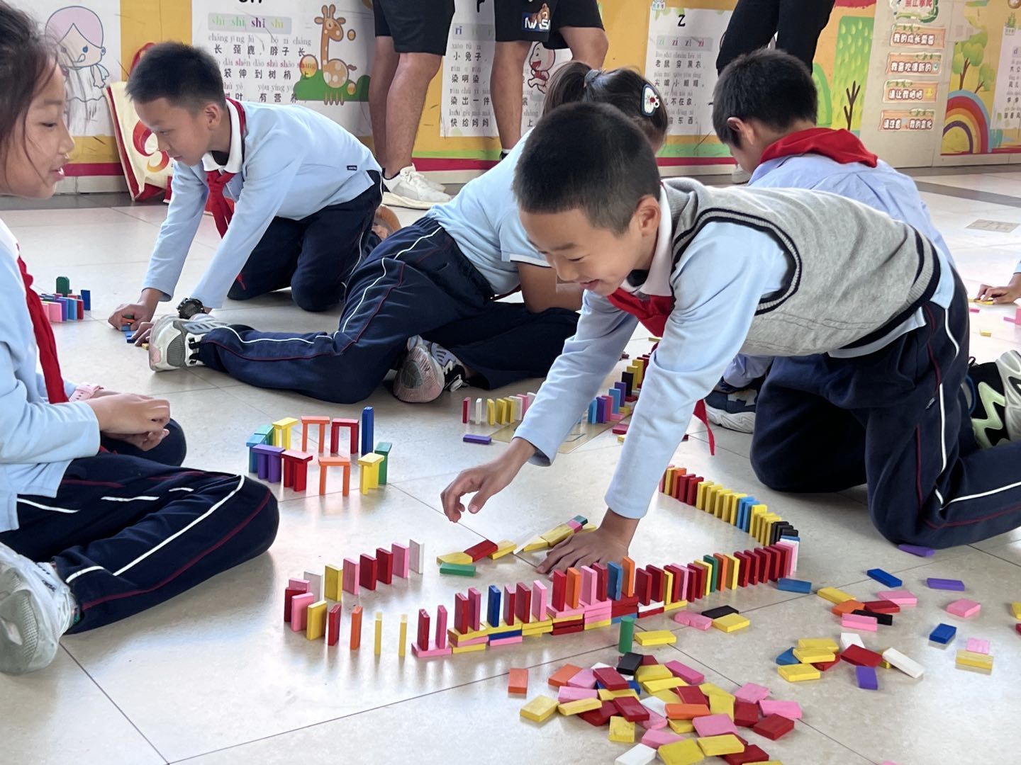 “123开始!”,小朋友手指一动,刷的一声多米诺骨牌应声倒下,课堂上又传来的一阵欢声笑语,课堂上,老师和学生们早已打成一片。这项具有澳门银河官网 建筑工程学院的专业特色的公益课堂已经坚持了十年。