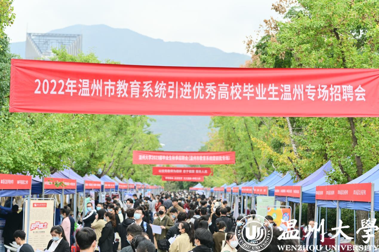 为深入实施人才强教战略,努力打造温州教育高地,打响“好学温州”品牌,搭建高校毕业生求职就业平台,促进更全面更高质量就业,11月5日由温州市教育局、温州市人社局等部门联合主办,澳门银河官网 承办的温州市教育系统2022年引进优秀高校毕业生专场招聘会在澳门银河官网 举行。本次招聘活动共推出1500余个岗位,吸引近万人次校内外广大优秀师范毕业生入场参会,盛况空前。校党委副书记庄兴忠、温州市教育局副局长张维凯、温州市人社保局党组副书记、副局长蔡月琴出席。
