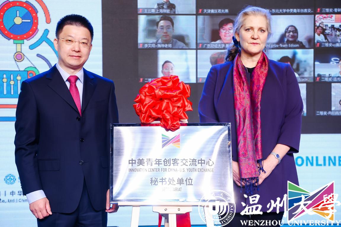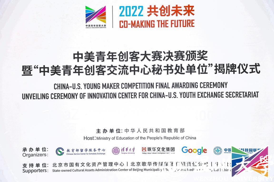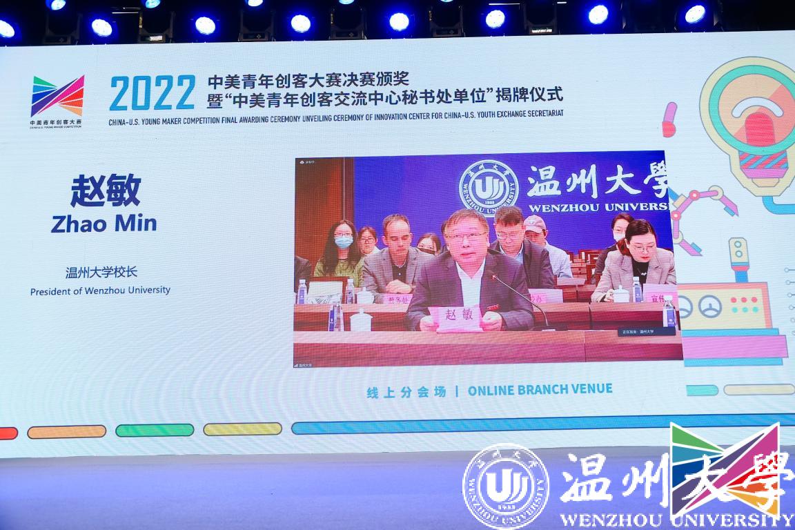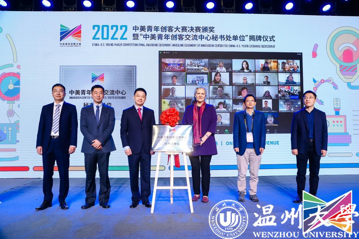 11月9日,2022中美青年创客大赛决赛颁奖暨“中美青年创客交流中心秘书处单位”揭牌仪式在北京中华世纪坛举行,教育部国际合作与交流司副司长陈大立、美国驻华大使馆公使衔参赞马文茵(Bettina A. Malone)、北京市委宣传部副部长张劲林、教育部留学服务中心副主任李晓哲等领导出席活动。活动在澳门银河官网 设立线上分会场,校长赵敏、党委副书记庄兴忠出席,党校办、宣传部、创新创业学院等部门学院相关负责人及温州肯恩大学代表参会。