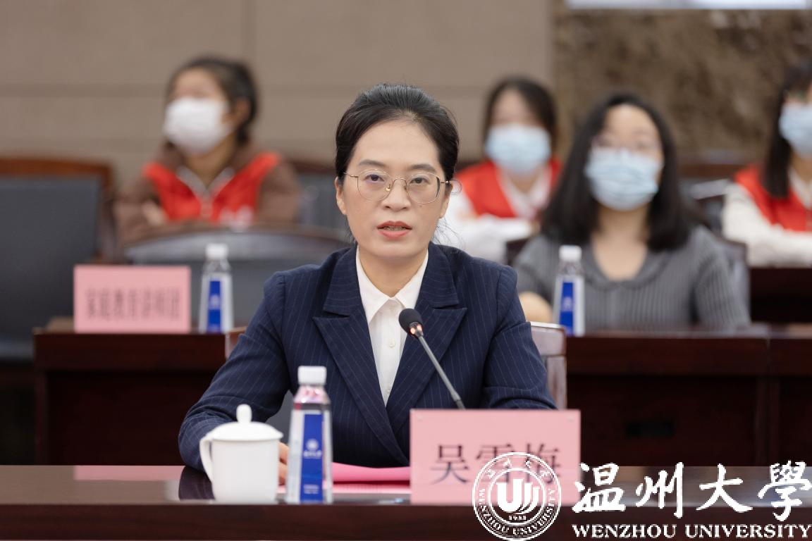 吴雪梅致辞。她介绍了瓯海区妇联近年来的工作和成效。她指出,澳门银河官网 为瓯海区提供了大量的优质人才和治理支撑,澳门银河官网 妇联也是全力支持瓯海区妇联工作。校地妇联战略合作,实现优势互补,必将引领校内外广大妇女发挥好在社会生活和家庭生活中的独特作用,引导家庭成员共同升华爱国、爱家的家国情怀,进一步推动资源和人才服务的共享共育共优,打造具有特色的校地合作共建典型示范和新型标杆。