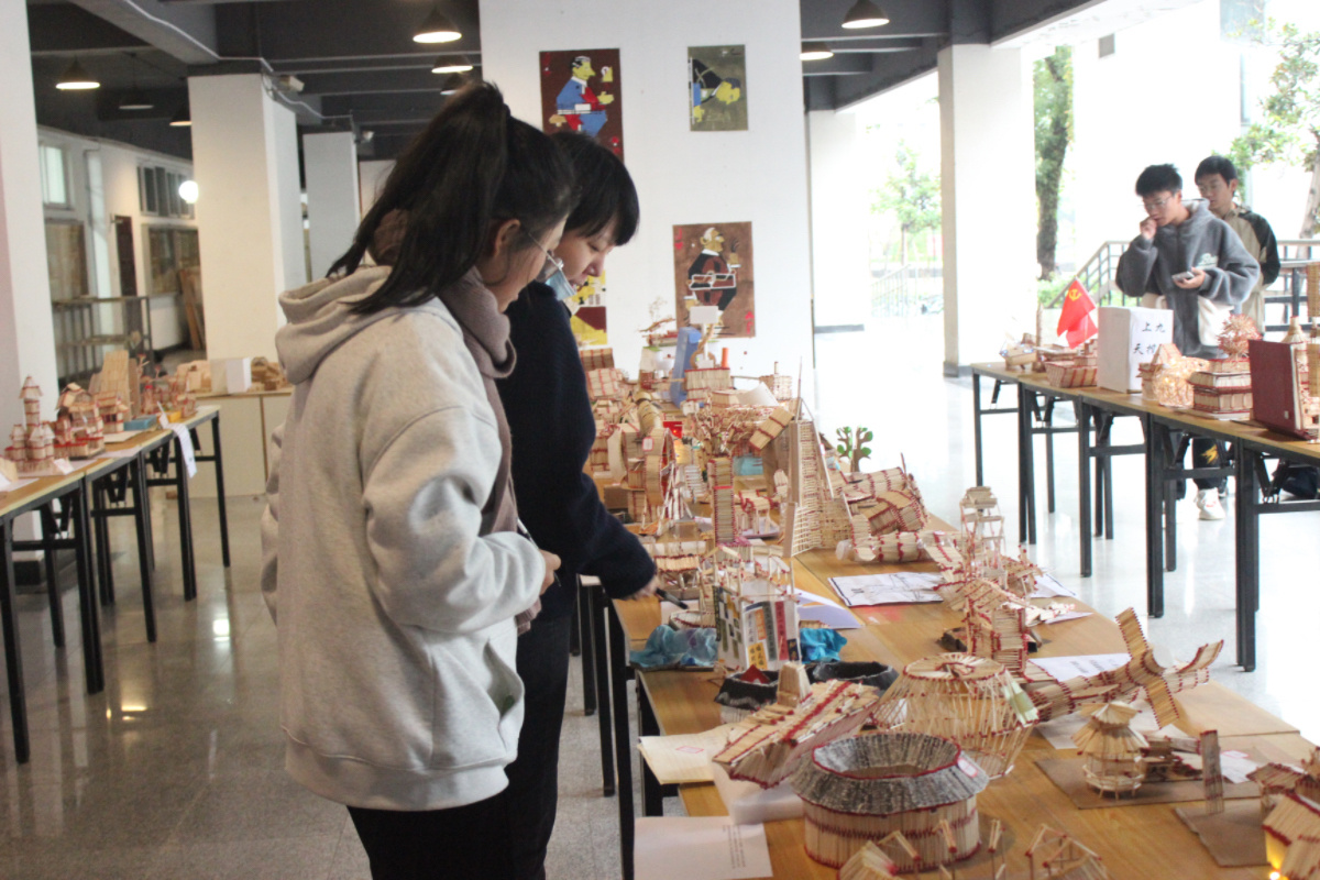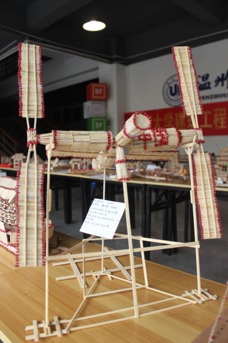 据悉,本次共有140多件火柴艺术作品,参观参选人次达500余人。本次活动以“乡村振兴,科教兴国”为主题,作品也与乡村振兴紧密联系在一起,各种体现浙江乡土人情的建筑模型陈列其中,获得了全校师生的一致好评。