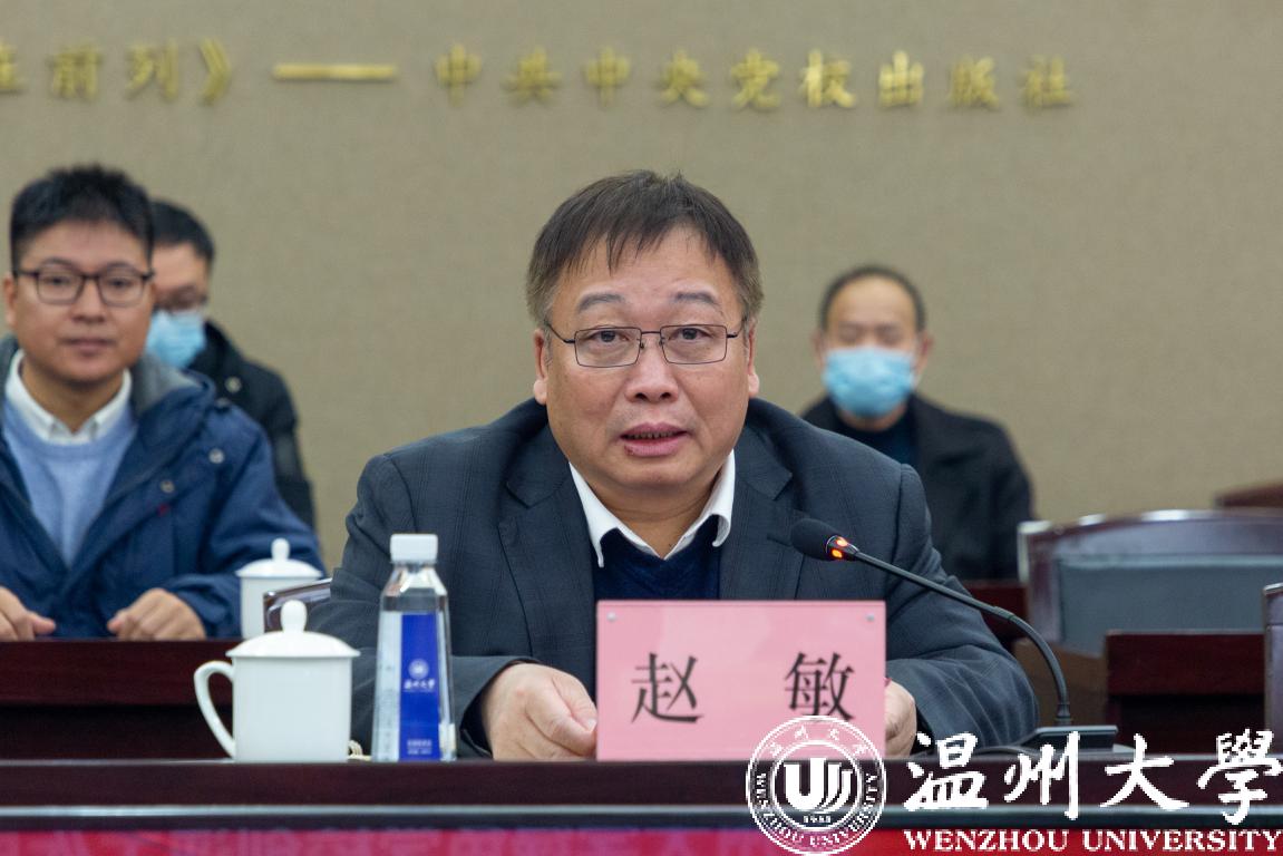 赵敏致辞。他对专家组一行表示热烈欢迎,并向专家组简要介绍澳门银河官网 办学情况和绿色澳门银河官网 创建工作开展情况。