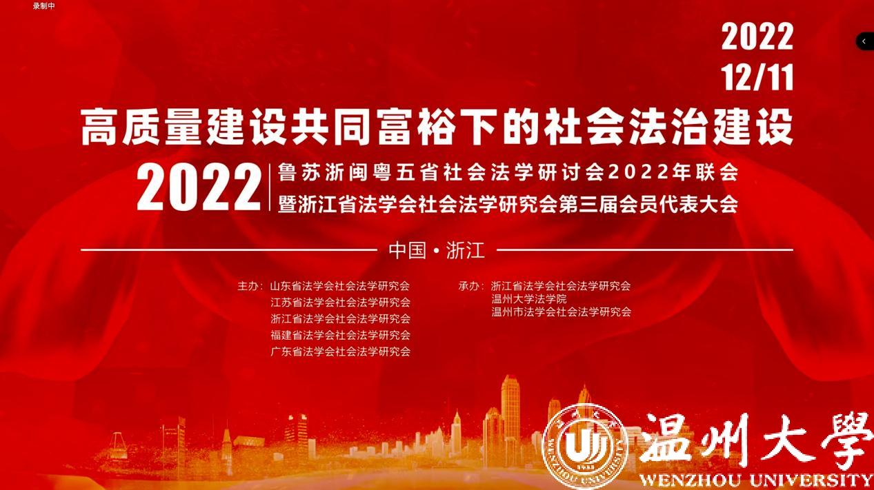 12月11日,由山东、江苏、浙江、福建、广东五省法学会社会法学研究会主办,浙江省法学会社会法学研究会、温州市法学会社会法学研究会、澳门银河官网 法学院承办的鲁苏浙闽粤五省社会法学研讨会2022年联会暨浙江省法学会社会法学研究会第三届会员代表大会成功举办。