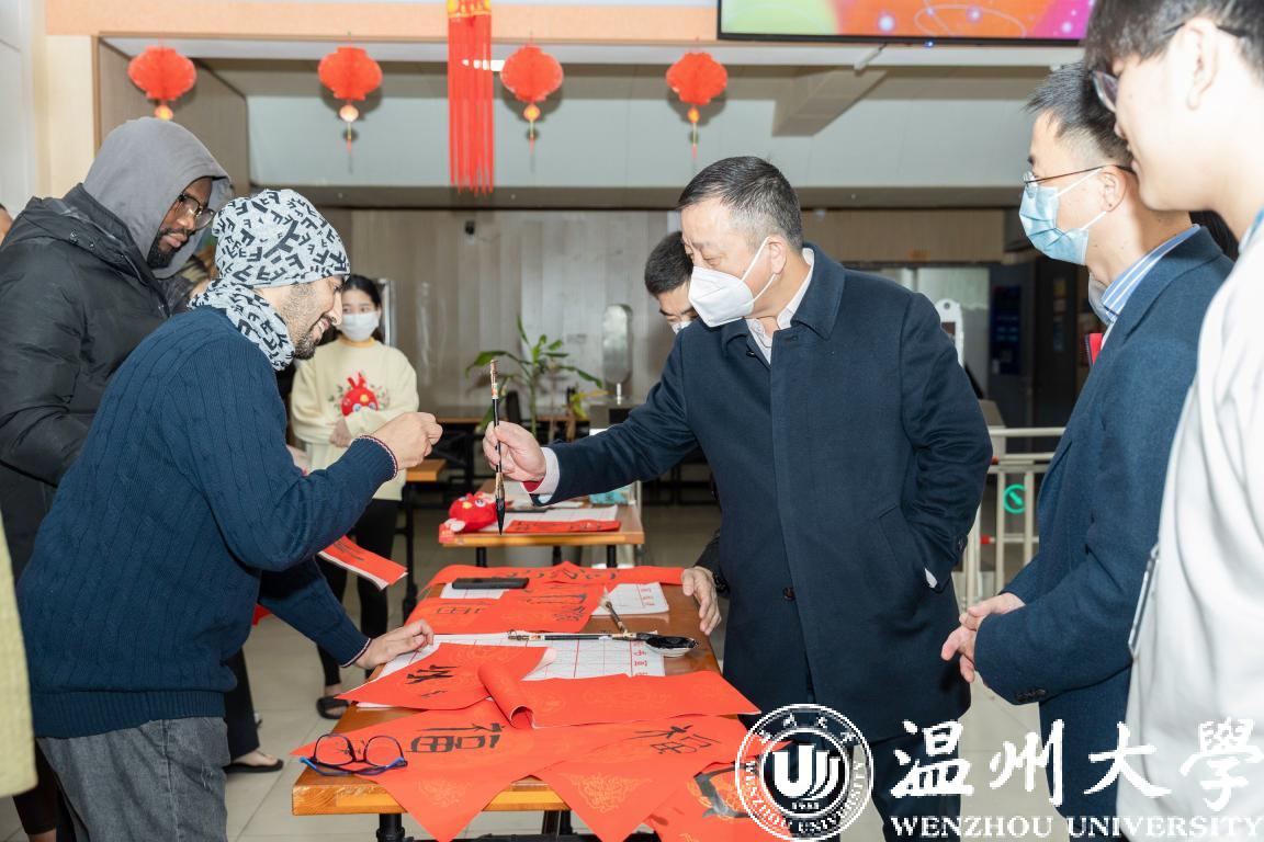 虎去雄风惊五岳,兔开健步跃三江。农历腊月廿三是中国小年夜,国际教育学院在留学生公寓举行了“写福、祈福、送福”活动。来自不同国家的留学生们在感受中国年味之时,校党委书记谢树华为他们送上中国新年的祝福。