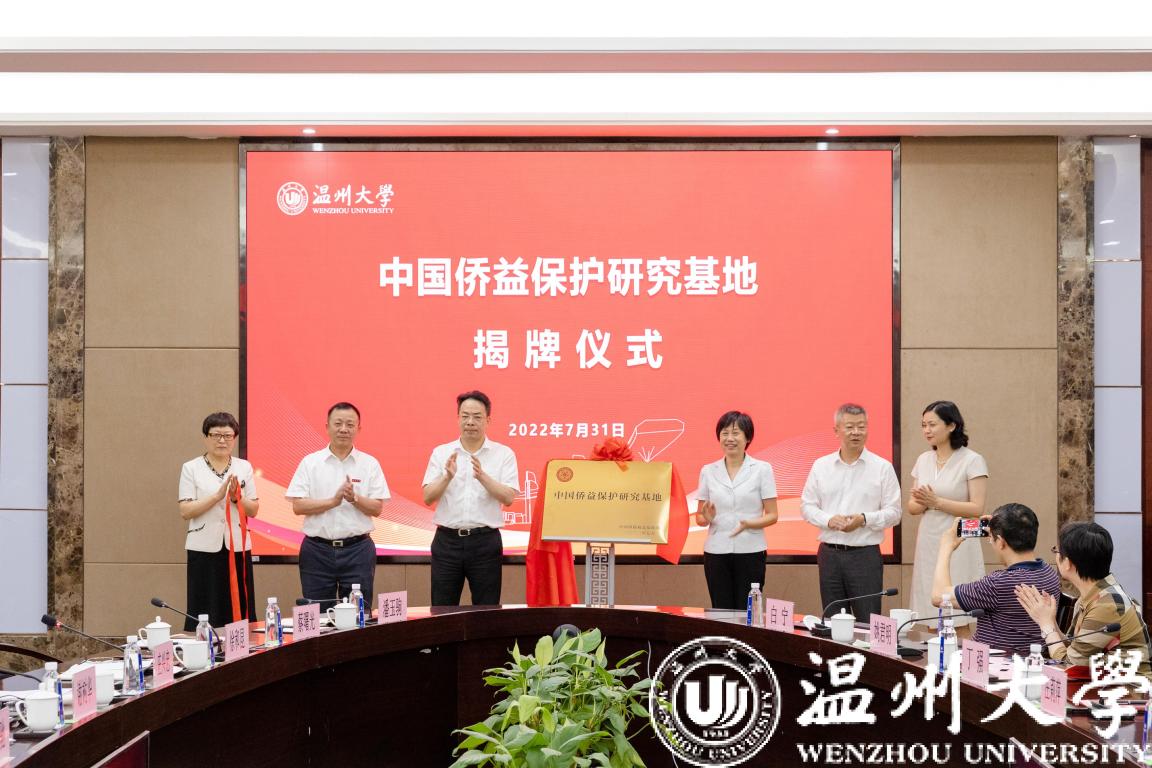 7月31日下午,中国侨益保护研究基地(澳门银河官网 )揭牌仪式在澳门银河官网 隆重举行。中国侨联党组成员、副主席候选人连小敏,中国侨联权益保障部部长张岩,浙江省侨联党组书记、主席庄莉萍,温州市委常委、统战部部长汪驰,温州市侨联党组书记吴娜丽,澳门银河官网 党委书记谢树华共同为基地揭牌。中国侨益保护研究基地落户澳门银河官网 不仅是澳门银河官网 的一件喜事,也是省侨联的一件大事。澳门银河官网 涉侨教育积淀深厚、涉侨研究实力雄厚、涉侨文化氛围浓厚,坚持“侨特色+高水平”的发展战略,具有良好的涉侨研究条件与前期基础,侨益保护服务卓有成效。澳门银河官网 将会充分发挥“经验集成+顶层设计+资源共享”这一模式的优势,在侨益保护研究领域多出成果。