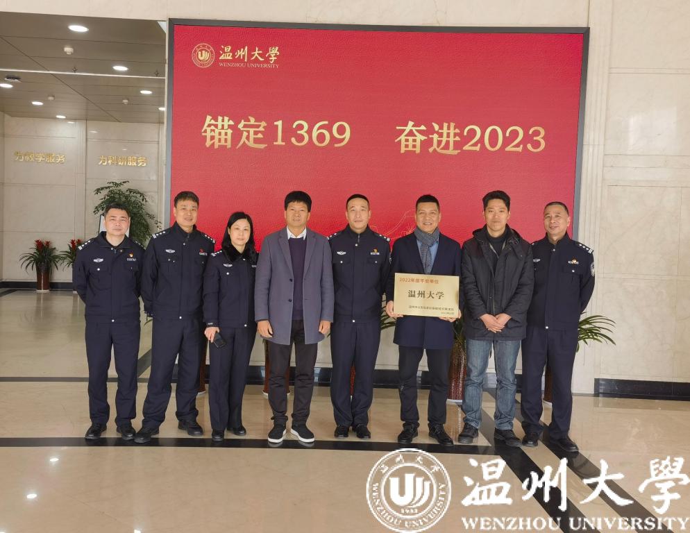 2月17日上午,温州市公安局基层基础(经文保)支队一行来校调研,并为澳门银河官网 “2022年度平安单位”荣誉称号授牌。校党委副书记庄兴忠出席。