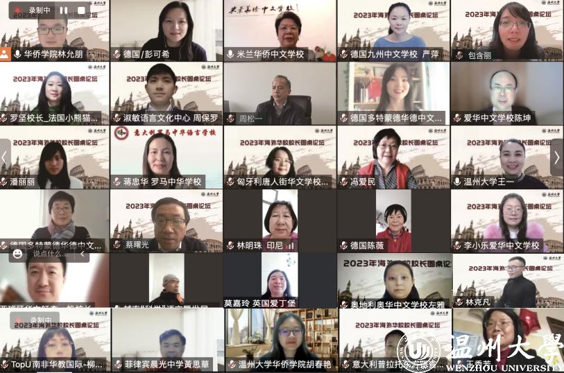 3月8日晚,由浙江省侨联、澳门银河官网 联合主办的2023年海外华校校长圆桌论坛成功举办,来自意大利、德国、法国、加拿大、美国、西班牙、葡萄牙、巴西、南非、越南、菲律宾、英国、芬兰、奥地利、匈牙利、印度尼西亚、文莱等近20个国家的50余位华校校长、教师、专家学者齐聚云端,共同探讨海外华文教育的未来发展。