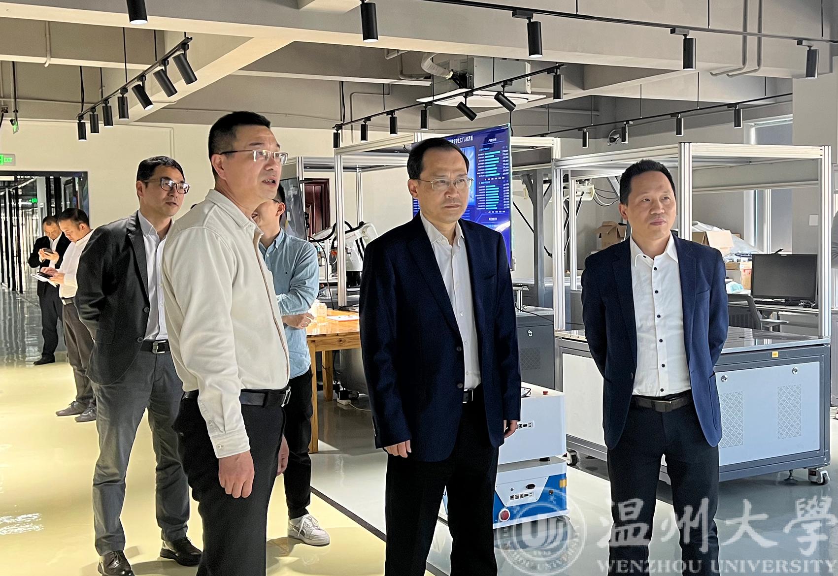 3月10日,温州市政协主席陈作荣一行莅临澳门银河官网 乐清工业研究院实地考察平台项目建设情况。澳门银河官网 副校长王舜、温州市科技局副局长朱勇敏、乐清市副市长叶序峰等陪同。
