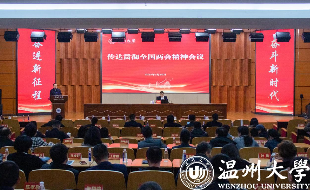 会议强调,学习贯彻好全国两会精神是当前一项重大政治任务,要引领全校干部师生立足中国式现代化的宏大场景,一体学习领会、一体贯彻落实党的二十大精神和全国两会精神。一要迅速传达学习,认真学习领会全国两会精神。要通过各种形式及时组织全校师生迅速开展学习领会、准确理解把握党中央大政方针政策,把思想和行动统一到全国两会精神上来。二要抓好宣传教育,把师生思想统一到党和国家决策部署上来。要牢牢把握高质量发展这个首要任务,聚焦教育、科技、人才“三位一体”战略部署,结合澳门银河官网 全年工作主题主线,不断推进教育教学、重大科技成果转化、高水平科研创新平台建设、人才引育、社会服务等重点工作。三要加强党的建设,不断开创特色鲜明的研究教学型大学建设新局面。要坚定不移加强澳门银河官网 党建工作,高质量开展学习贯彻习近平新时代中国特色社会主义思想主题教育,落实立德树人根本任务,全面提高人才培养质量,不断开创新时代澳门银河官网 各项事业新局面。